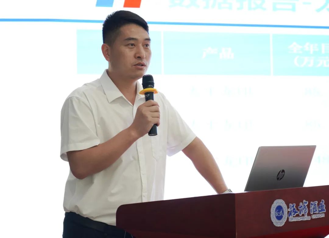 板城酒業(yè)營銷管理部經(jīng)理楊輝匯報上半年度的相關(guān)工作,對戰(zhàn)略目標落地的關(guān)鍵指標、深度分銷模式落地的數(shù)量與質(zhì)量等工作開展進行有效追蹤、檢核與分析。