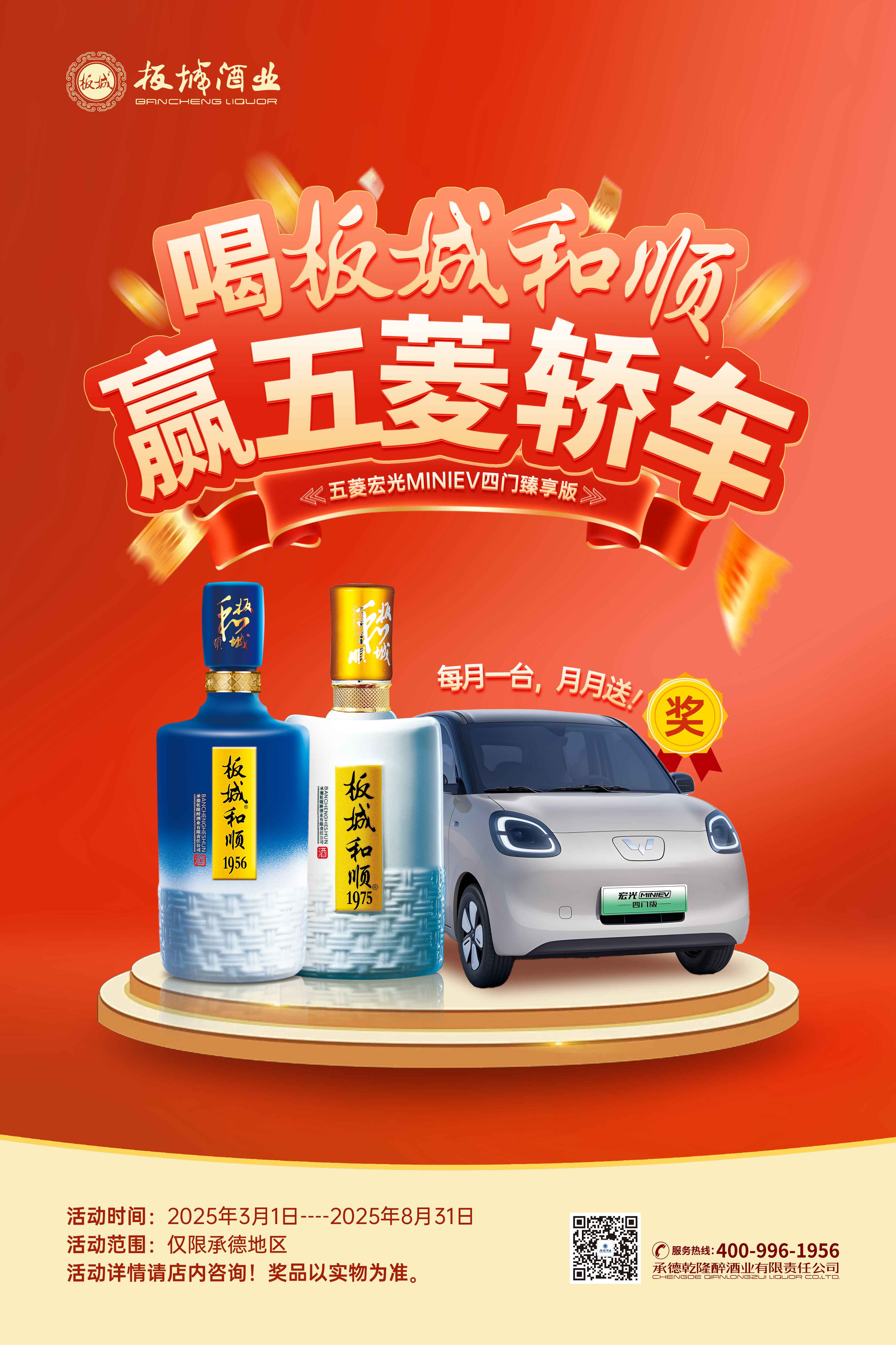 板城酒業(yè)“喝板城和順贏五菱轎車”消費(fèi)者大型回饋活動在承德地區(qū)全面啟動。