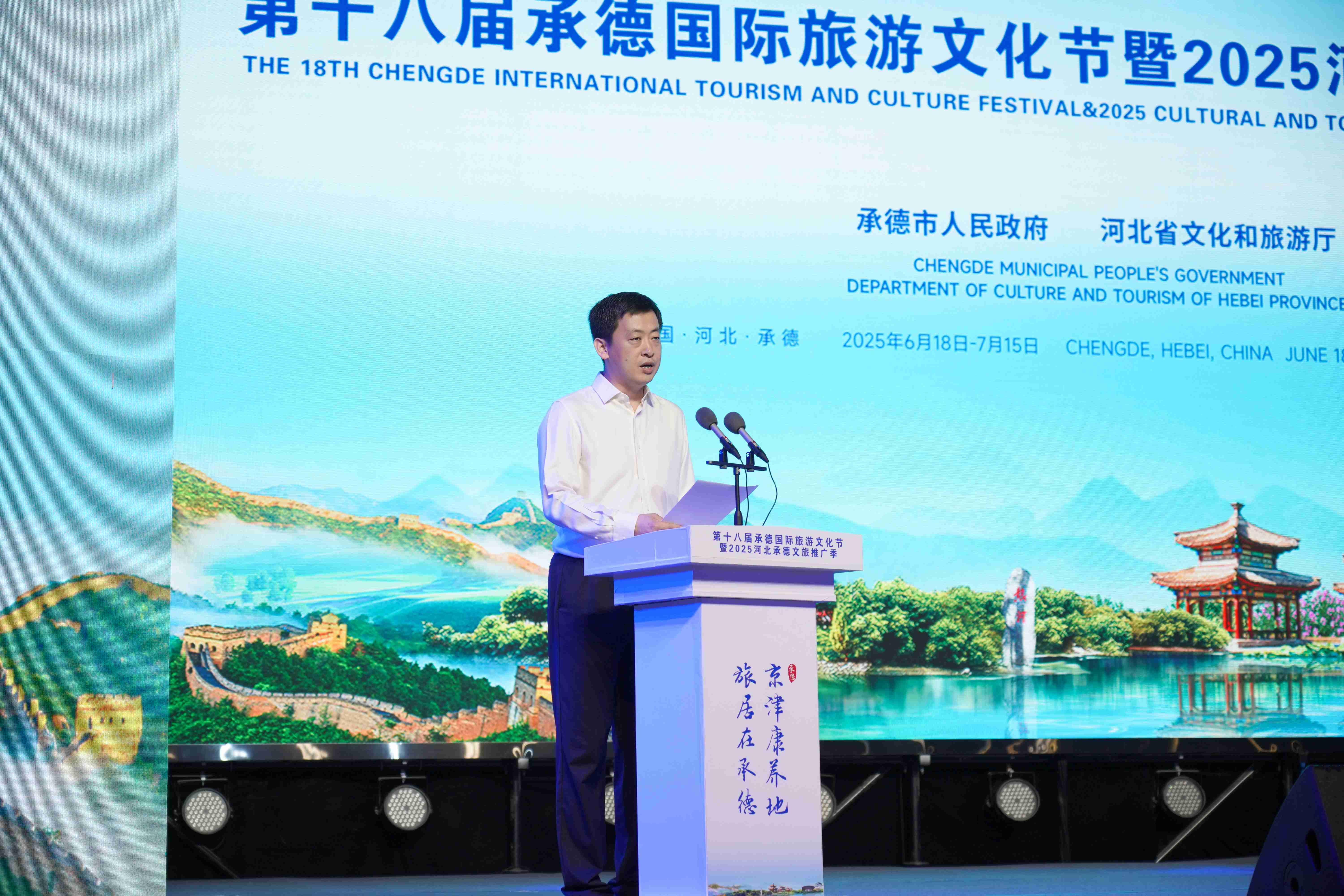 在熱烈的氛圍中,與會(huì)領(lǐng)導(dǎo)共同按下啟動(dòng)裝置,標(biāo)志著第十八屆承德國(guó)際旅游文化節(jié)暨2025河北承德文旅推廣季正式啟幕。